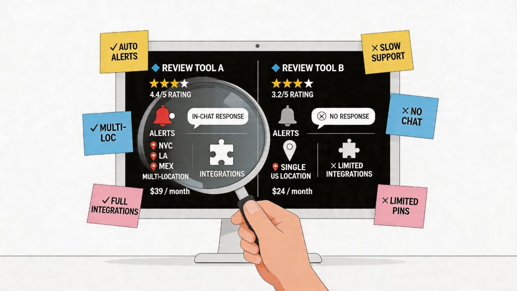 The other thing to watch is UK platform coverage versus the sites your business depends on. That’s a recurring issue across this category. According to a review monitoring software analysis focused on UK gaps, many tools still leave businesses with incomplete monitoring on region-critical platforms, which is one reason some firms miss reviews that affect local visibility and trust on UK-specific directories and services (reviewflowz analysis).
